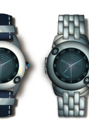 Another prototype design. Unlike most analog watches this one has the the day/date windows seperate from the main dial and are are always be visible. A stainless steel case encloses a thirty three jewel automatic movement with a sapphire crown.